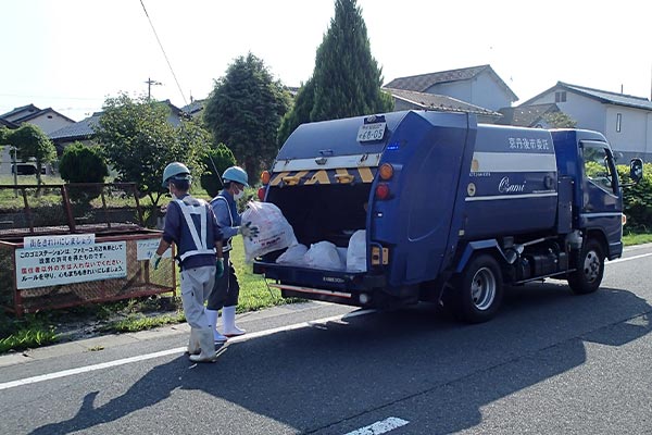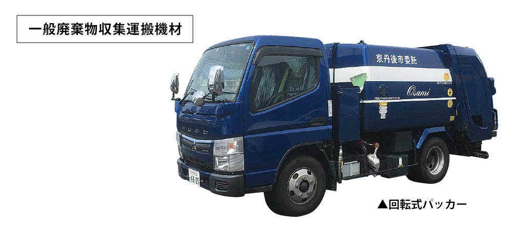 京丹後市委託による一般廃棄物の収集では京丹後市内を定期的に巡回、各家庭から出されるゴミなどを収集、運搬し適切な処理を行っています。