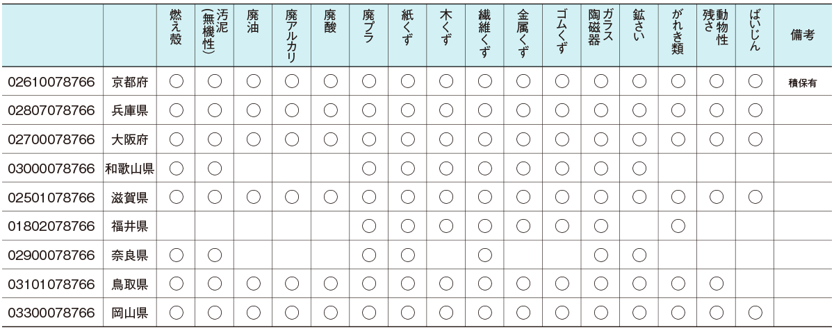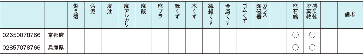 《特別管理産業廃棄物収集運搬業許可一覧表》